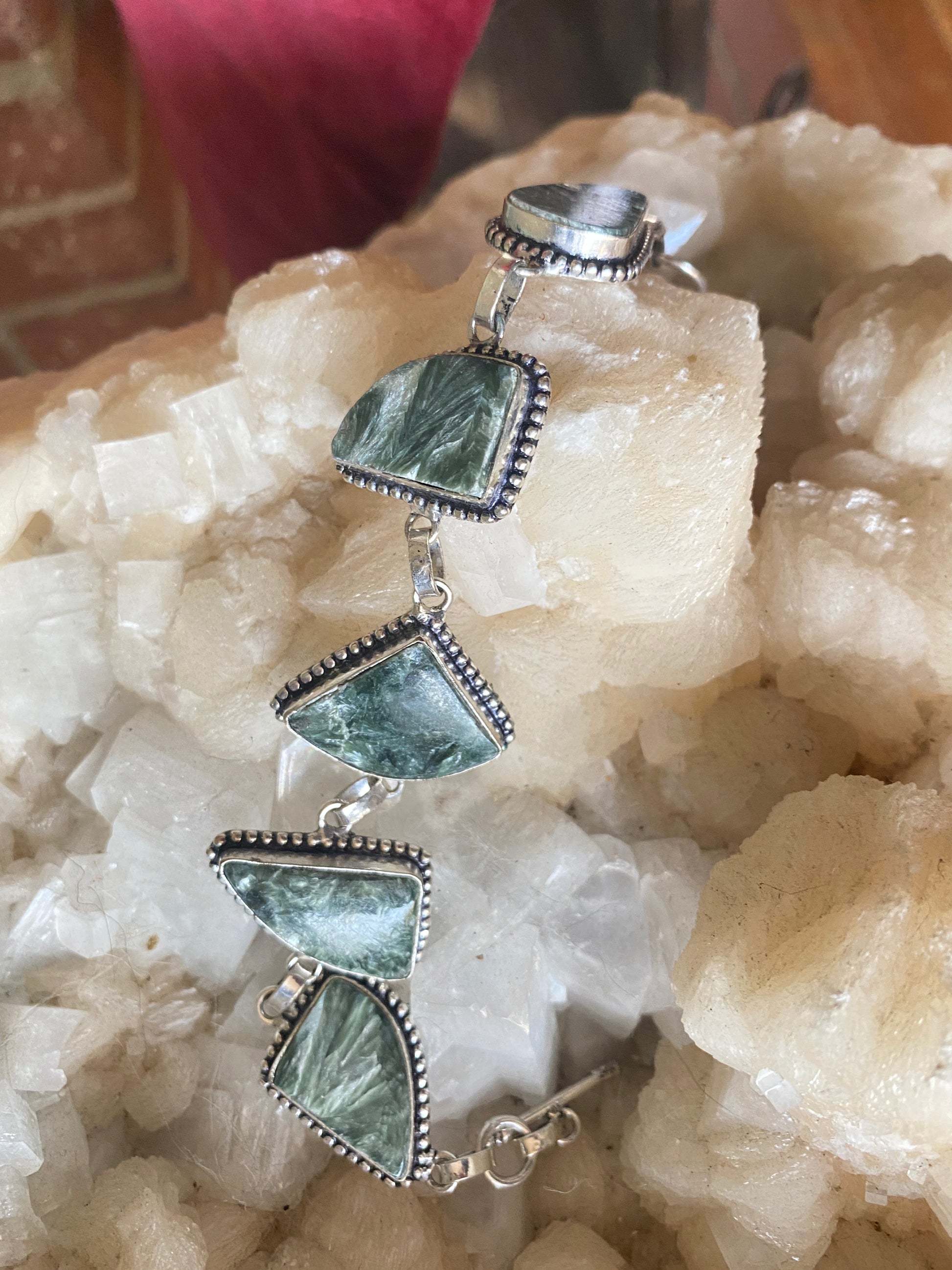 Set in Sterling Silver Bezels and connected by Silver plated links.