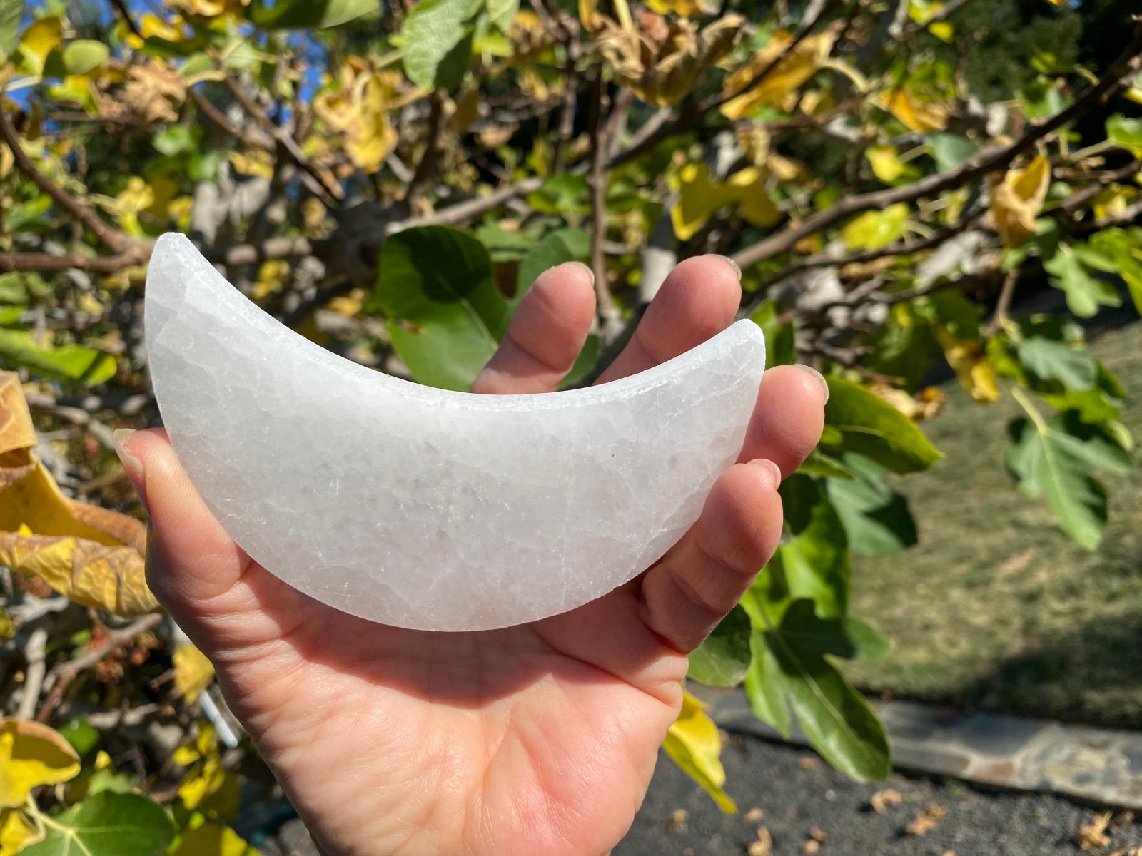 Selenite is believed to clear the negative energy of other crystals and enhance your connection with higher realms and facilitate a serene mental state. Place bowl in the sunlight, and lay your jewelry and small crystals in the bowl sweep the energy field to cleanse and purify your crystals.